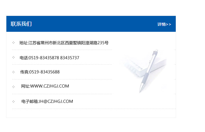 地址:常州市新北區友邦商務大廈1幢16、17層  電話:0519-85101652  傳真:0519-85112595  郵編:213022  網址:www.cz-jiayue_cn.dgmzauto.com  郵箱:xiajifengaa@163.com